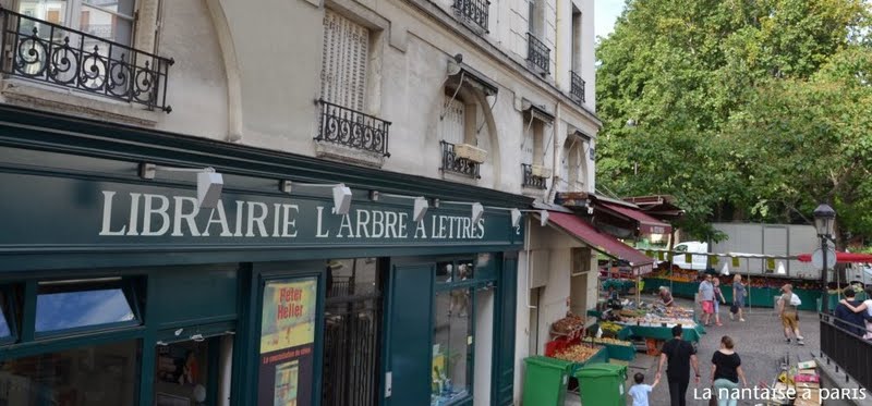Le premier lieu que j’ai adopté dans mon quartier, dés mon arrivée en 2007, c’est donc cette librairie : L’ARBRE A LETTRES. Dans le Bas Mouffetard elle fait face à la fontaine, près de l’Eglise St Médard.