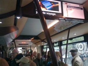 Parlons en justement des fauteuils roulants et des poussettes, cette fois les bébés et les handicapés pourront également regarder dehors car les vitres descendent beaucoup plus bas, donc beaucoup plus lumineux et agréable. Tout semble high-tech, des écrans LCD pour indiquer l’arrêt, la position et la direction, et aussi une voix, comme dans les bus Anglais ou le métro pour nous indiquer le prochain arrêt… Personnellement la voix me fait beaucoup penser à la voix off des Settlers, mais c’est sans doute mon côté geekette qui se réveille 🙂