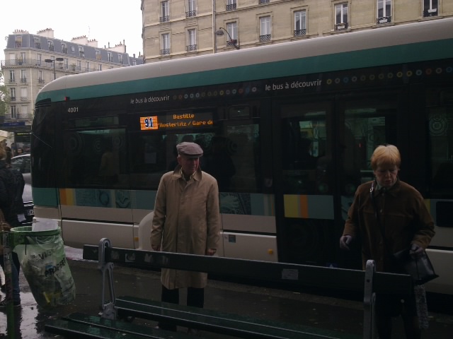 D’extérieur on dirait plus un car vue de face, surement due aux panneaux lumineux pour indiquer le numéro de la ligne et la destination, à l’intérieur on se sent plus dans un tramway, au revoir le vert pâle, maintenant tout est de bois et de bordeaux. Plus d’espace pour les poussettes, les valises (nombreuses sur la 91 qui dessert trois gares : Montparnasse, Austerlitz, et Gare de Lyon) et surtout pour les fauteuils roulants.