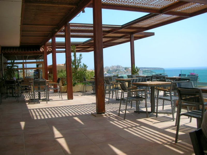 Le restaurant de l’hôtel est le noyau du resort, le bar restaurant donne sur la baie d’Agios Nikolaos.