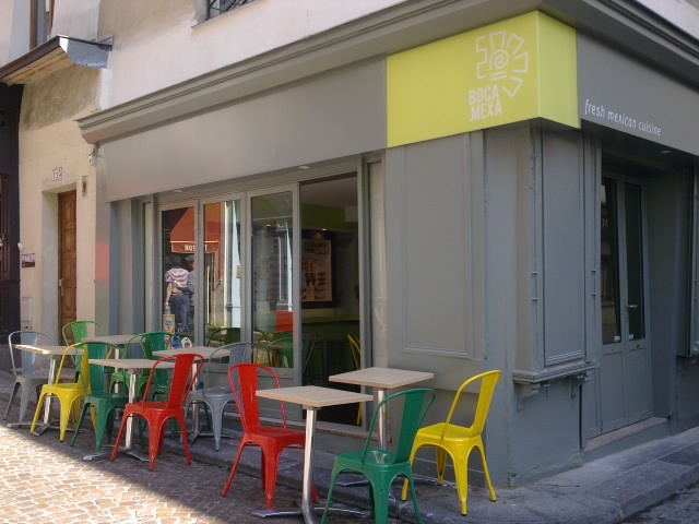 Le choc était rude pour moi, et il l’est d’autant plus depuis que la nouvelle ancienne est ouverte. A présent au 127 Rue Mouffetard nous trouvons une espèce de Fast-Food Mexicain nommé Boca Mexa, fashion, épuré vert et gris, une équipe assortie de serveurs (identique à un Mc Do ou un Subway mais avec un sombrero cette fois) nous accueille…