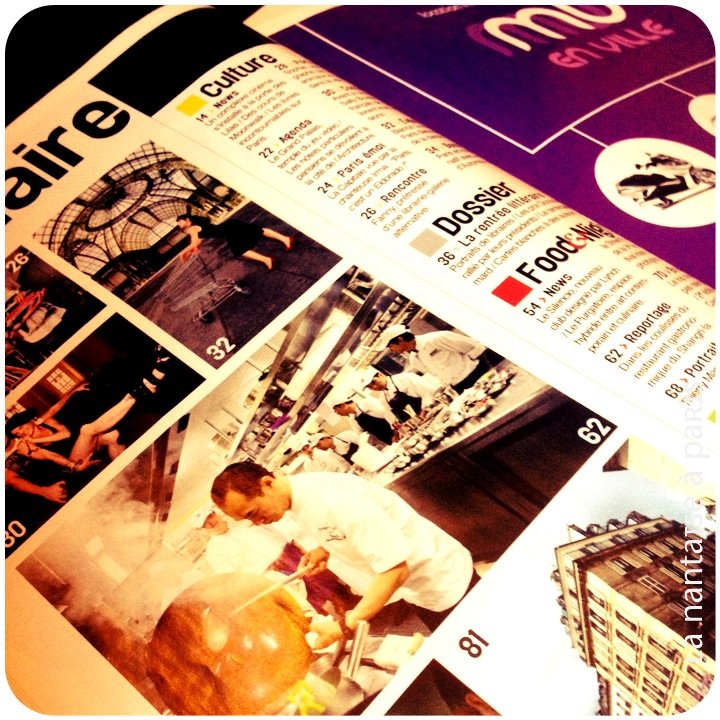 Le numéro actuellement en kiosque a pour dossier principal la Seine. On découvre donc au fil des pages des Parisiens qui vivent sur la Seine et d’autres qui y travaillent, mais aussi des lieux sympa sur ou avec vue la Seine comme les terrasses du salon de thé de l’Institut du Monde Arabe.