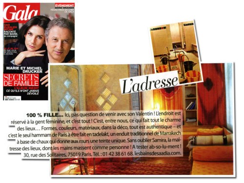 Je découvre grâce à la revue de presse de leur site que de nombreux articles parlent des Bains de Saadia et que certaines « stars » (à part mes amies et moi) y ont apparemment leurs habitudes :