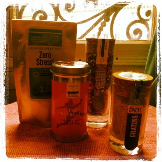 Évidemment j’ai craqué pour deux de leur thé : l’infusion Zero Stress rooibos, mélisse, verveine et jasmin et le thé Vitalité thé vert menthe, acérola et citron vert, mais aussi 2 produits que je n’avais encore jamais testé : le mélange Fleurs et Fruits pour dessert et le mélange d’épices à gratins.