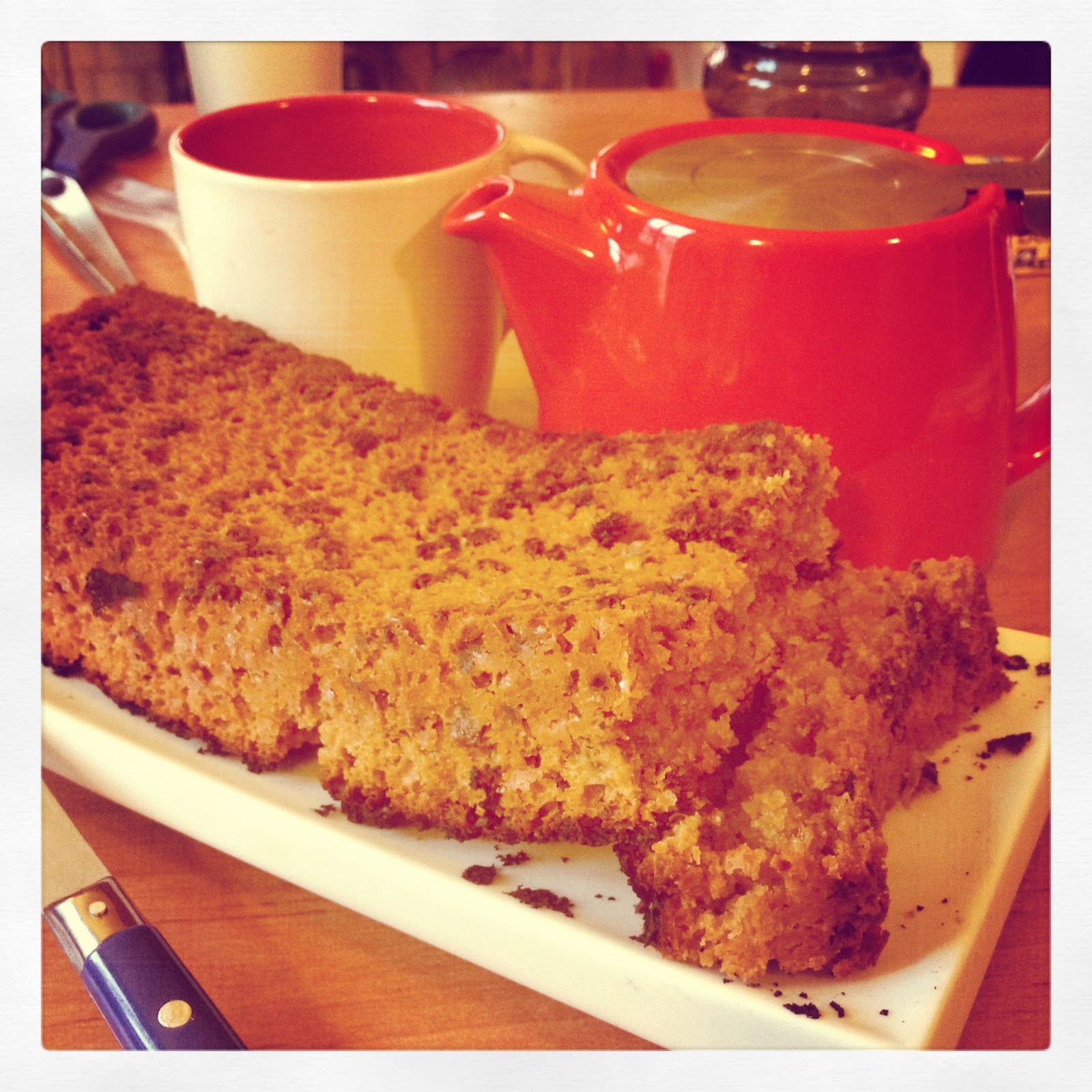 Enfin… j’ai fais avec les moyens du bord car mon four à un coup de froid et que je n’avais ni lait, ni oeufs mais j’ai réussi à faire un petit gâteau sympathique !