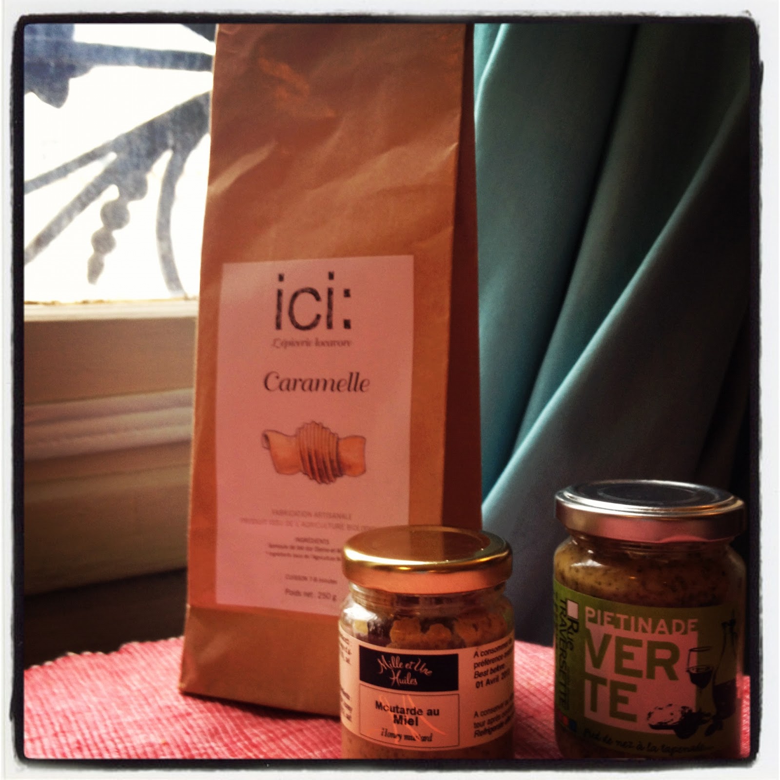 – des pâtes sèches caramelle de chez ICI:, fabrication artisanale, biologique et locale (made in Ile de France).