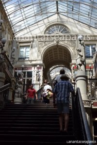 Et il le mérite amplement : un passage couvert reliant la Rue de la Fosse à la Rue Crébillon, une étrange galerie commerciale sur 4 niveaux, des statues qui guident notre chemin, du parquet au sol et une verrière au dessus de notre tête.