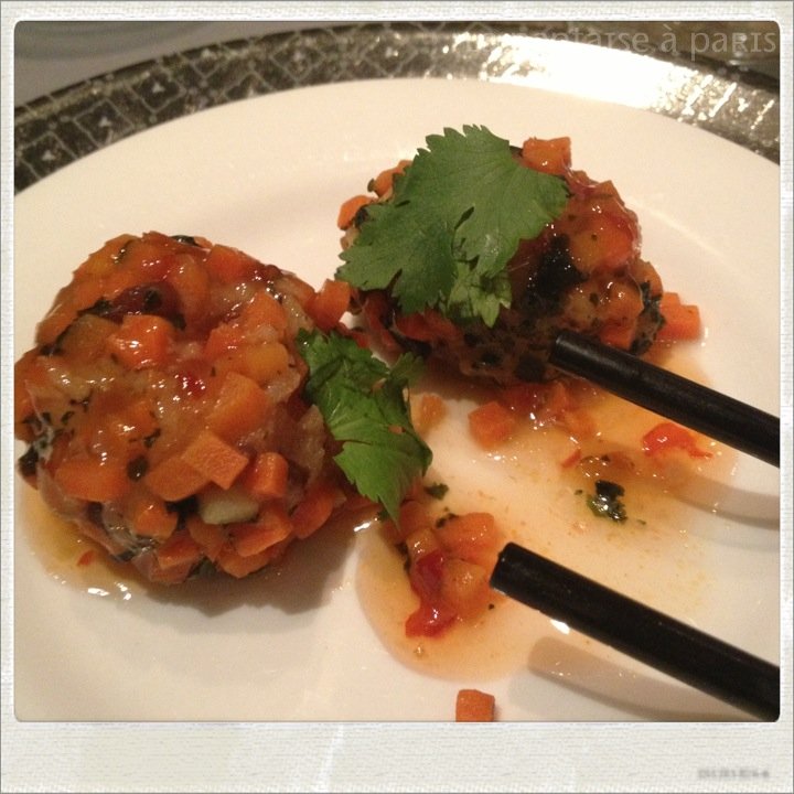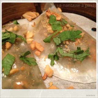 Au choix donc diverses bouchées salées (et même sucrées) à base de crevettes, poulet, boeufs ou même légumes…