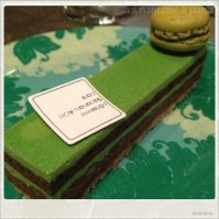 Et une petite note sucrée pour terminer : une jolie pâtisserie japonisante de Sadaharu Aoki, le Macha Azuki (pâte de haricots rouges, crème de thé vert et ganache au chocolat). Fin & délicieux !