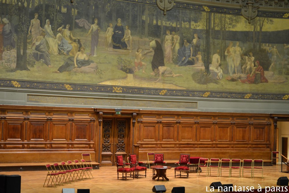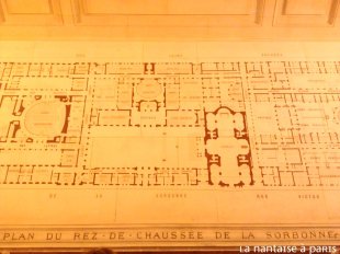 A l’étage nous découvrons des peintures sur toiles recouvrants les murs et qui nous retrace l’histoire de La Sorbonne, Le Grand Salon de Réception, la Salle de Réunion et surtout les appartements du Recteur de l’Académie de Paris où est notamment exposé le portrait de Richelieu par Philippe de Champaigne et les Masses des Universités de Paris, mais ici pas de photos.