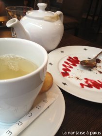 J’ai goûté le fondant au chocolat qui est absolument délicieux, accompagné d’un thé vert « Le Secret des Anges » (thé vert, thé blanc. papaye, ananas confits) de chez Les Thés Bourgeon que je ne connaissais pas. Très très doux et savoureux !