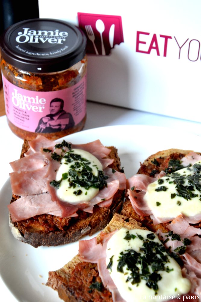 J’ai adoré cette box … Avec les vacances je n’ai pas encore pu tout tester mais le soir même la sauce Jamie Oliver me servait à faire mes bruschettas tomate-jambon-mozza. Délicieux !