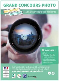 Un grand concours photographique dédié au cadre de vie quotidien des Français A l’occasion des 20 ans de la loi du 8 janvier 1993 dite « loi Paysage », le ministère de l’Ecologie, du Développement durable et de l’Energie lancera en octobre 2013 un concours photographique national autour des paysages du quotidien.