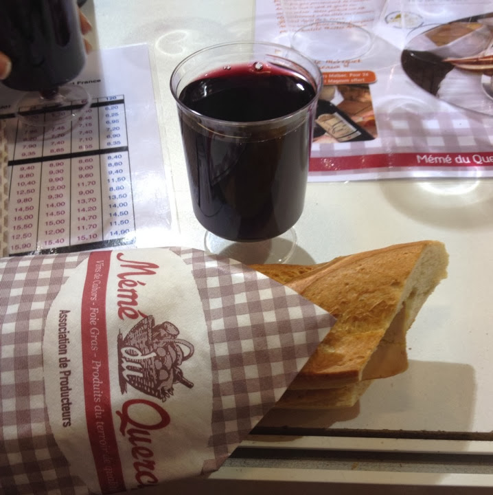 Un petit creux… direction le hall 7.2 pour un dégustation de vins et spécialités de nos régions… Un petit lunzu Corse ; un petit sandwich au foie gras accompagné d’un verre de Cahors chez Mamie du Quercy pour 8€ … Délicieux !