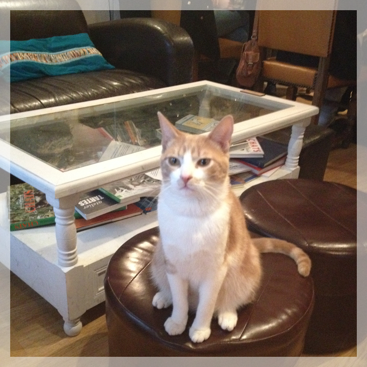 Une petite présentation des lieux est fourni d’ailleurs avec le menu. L’ensemble des chats étaient des petites boules de poils abandonnées recueillis par Margaux, la maîtresse des lieux. Ils sont bien évidemment identifiés, vaccinés, stérilisés et suivis régulièrement par un vétérinaire.