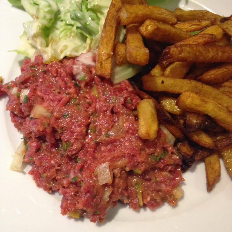 Côté cuisine. Du bon traditionnel. Cette fois j’ai dégusté un délicieux tartare de boeuf avec ses frites maison, accompagné d’un verre de chinon.