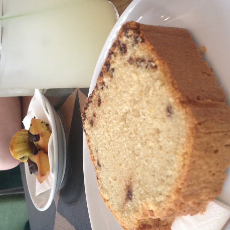 Aujourd’hui il fait chaud donc on choisi une citronnade, et chacune une gourmandise. Petites madeleines au chocolat (5€) pour ma Best et part de cake Chocolat-Chaï (4.5€)