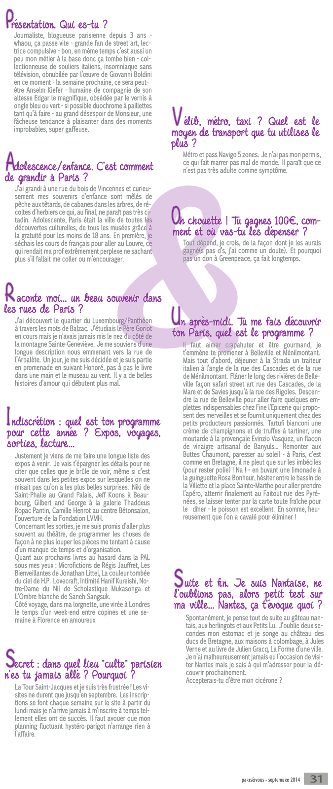 Super interview ! Qui donne envie d'aller se balader dans Paris, en pèlerinage ou pour faire de nouvelles découvertes. C'est vrai, ça, c'est toujours quand on est à l'étranger qu'on visite le plus…