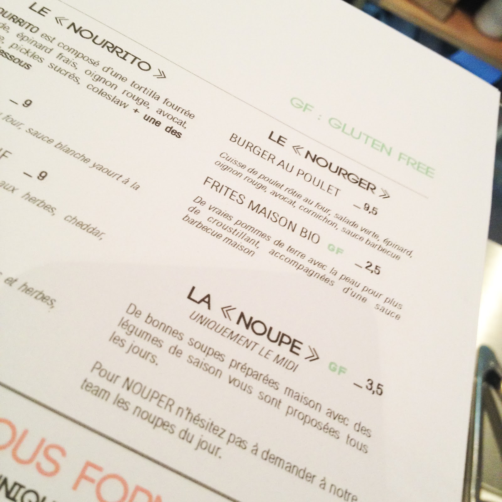 Et bien pour moi c’est la première fois que je mange sans gluten et c’est bien bon. J’ai même pas été perturbée par ce changement, même en choisissant le « Nourger » (9.50€) un délicieux burger au poulet, oignons, avocat et sauce divine barbecue très très savoureux, accompagné de frites maison très bonnes aussi (2.5€) … et pis car tout cela m’a inspirée oui j’ai pris aussi un dessert le Carrot Cake arrosé de caramel au beurre salé. TOP !