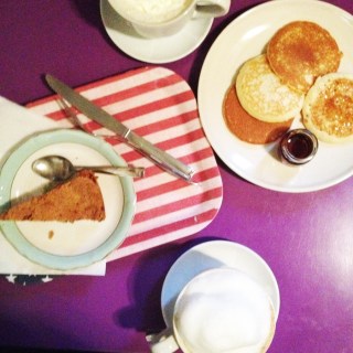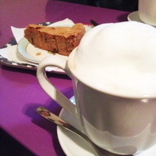 Revenons à la dégustation … j’ai choisi un cappuccino accompagné d’un carrot cake. Un poil sec, mais pas mal du tout ! L’Amoureux lui se laisse tenter par un Milkshake vanille !