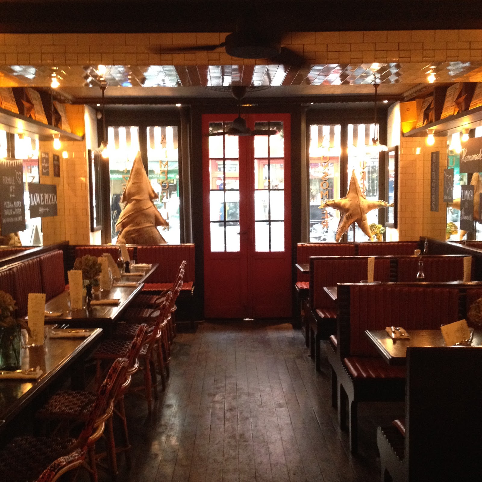 Rendez-vous donc dans un des meilleurs burgers de Paris pour moi, au Delmas Deli.Surprise d’ailleurs en arrivant, le décor a changé il y a quelque semaines. Moins de banquettes, plus de tables, on affirme le côté cosy et la carte est allégé (exclusivement des burgers et des pizzas) et même s’il s’agit toujours de l’annexe du Delmas il s’appelle désormais le Stella Rosa.Un changement dans nos assiettes également. Toujours aussi savoureux, maintenant nous n’avons plus un burger mais deux mini.