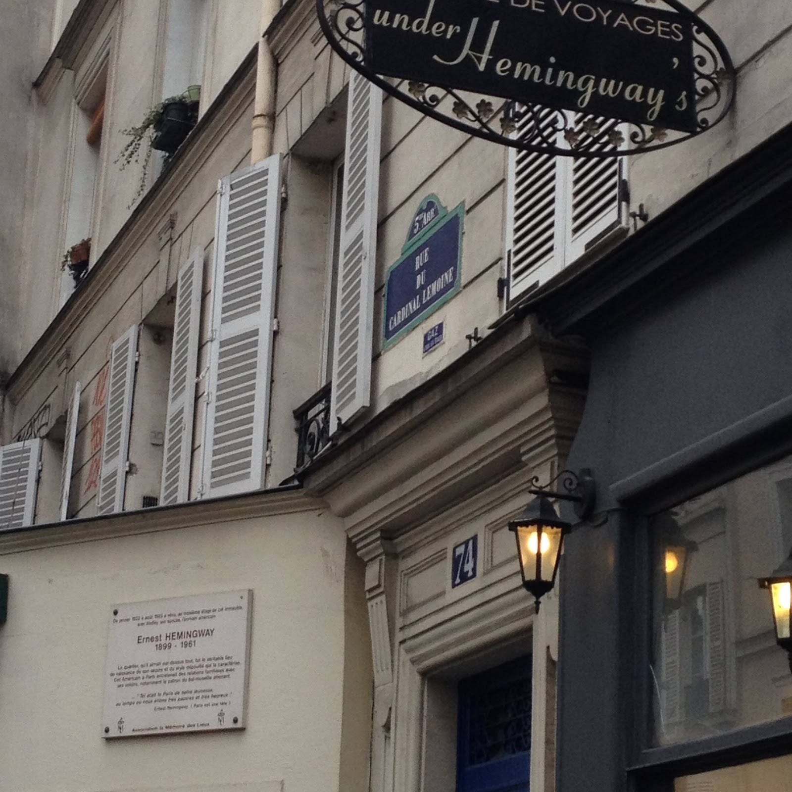 C’est ici qu’il a vécu, avec sa première femme Hadley..  A deux pas de la place de la Contrescarpe, dans les années 1922-1923. Une plaque commémorative a été fixée sur la maison sur laquelle est gravée une phrase d’Hemingway extraite de Paris est une fête :