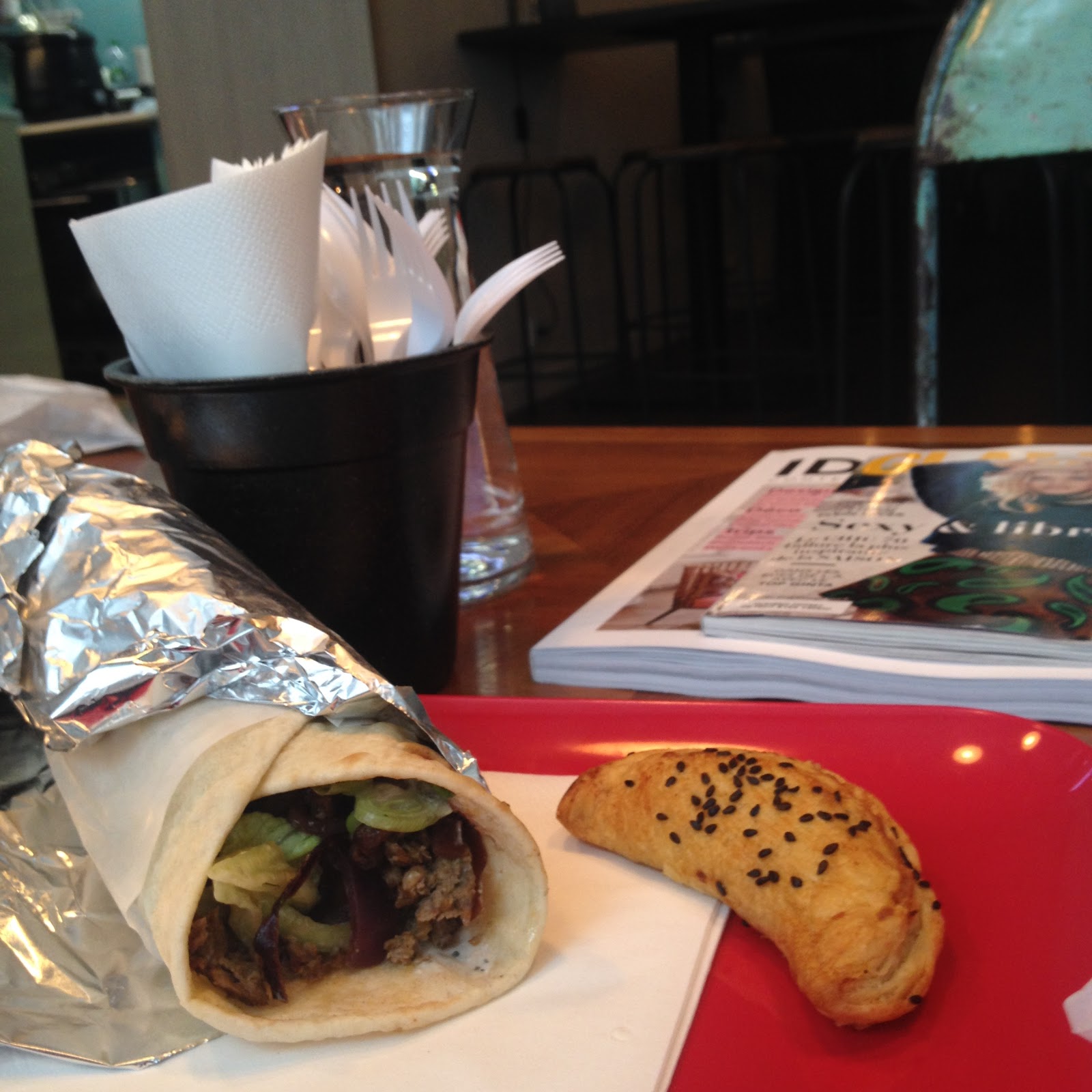 Ce jour là j’avais très très faim du coup j’ai pris en entrée les beignets indiens à la viande, suivi du sandwich Naan Imal qui est un délicieux naan garni de bœuf et agneau, mesclin, oignons confits, et une sauce yaourt tamarin.