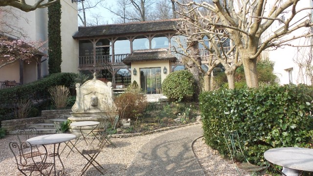Le restaurant s’ouvre sur un magnifique jardin donnant sur les célèbres étangs de la région.