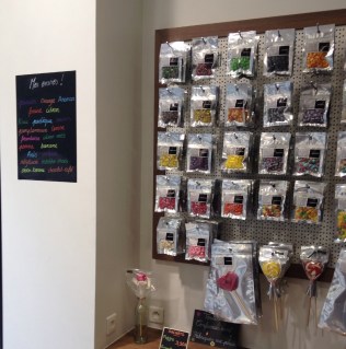 J’ai adoré c’est tout petits bonbons calibrés sous nos yeux… Plein de couleurs, de saveurs, de motifs … proposés en sachets ou dans des petits bocaux en verre qui donnent envie de commencer une collection.