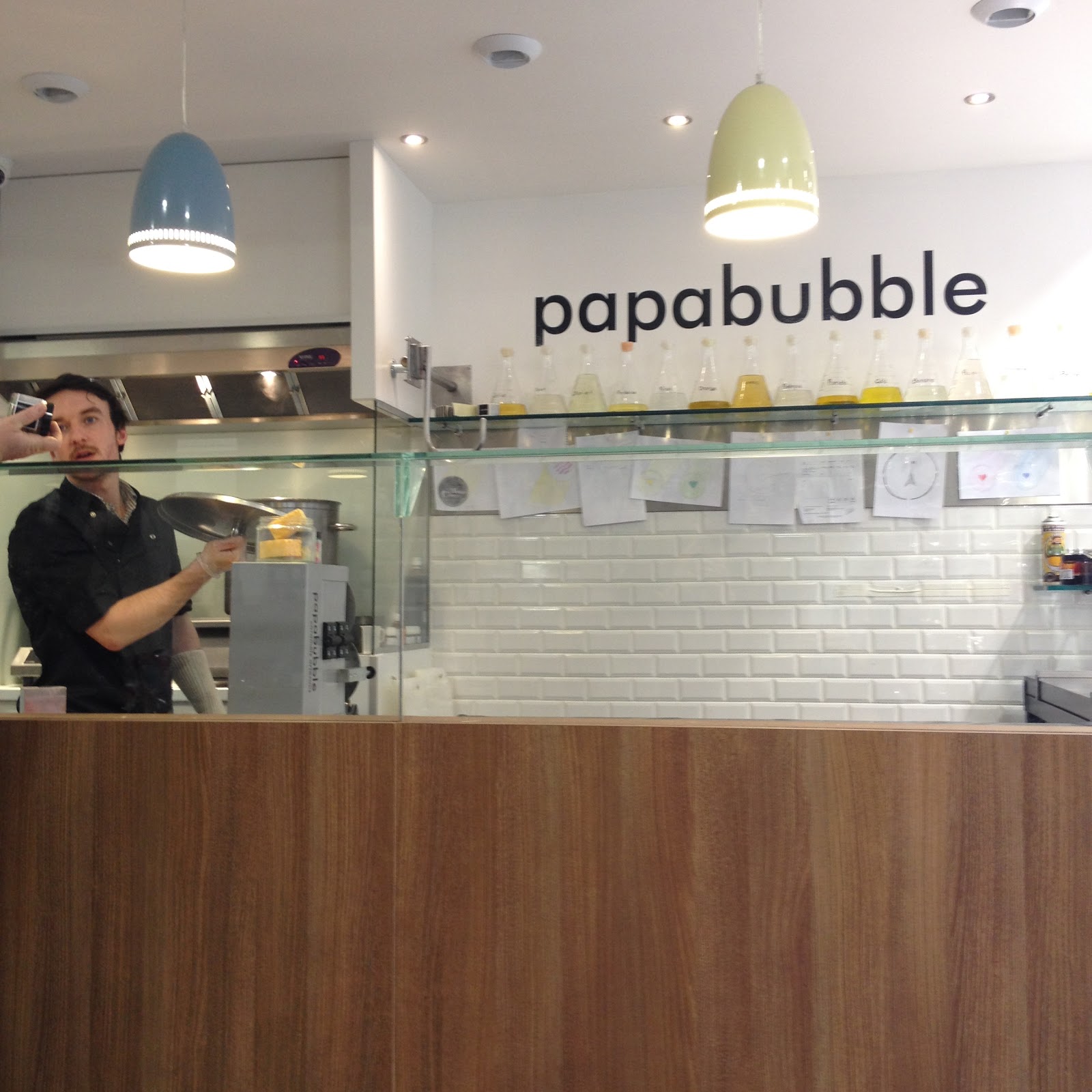 Papabubble, créé par Xavier Boneau en 2004 à Barcelone, propose d’authentiques bonbons de sucre et sucettes fabriqués de manière artisanale en magasin.