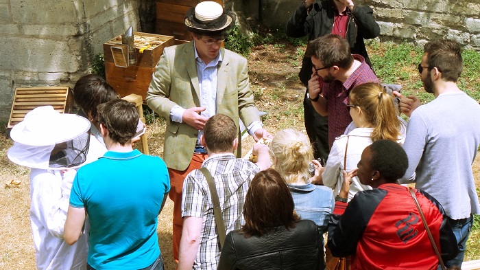 Rendez-vous donc aux Invalides pour rencontrer Audric de Campeau, apiculteur professionnel et responsable de Miel de Paris, qui a implanté ses ruches dans les douves des Invalides. On en apprend plein sur les abeilles auprès de ce passionné, et surtout on trempe ces doigts avec bonheur dans le miel encore tout chaud…