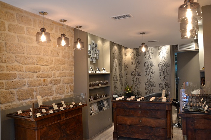 Durant l’été la boutique s’est refait une beauté … Une nouvelle déco mais aussi un réaménagement total de l’espace pour mettre en valeur les chocolats et un petit salon conviviale pour échanger avec Marie-Hélène, la maîtresse des lieux.