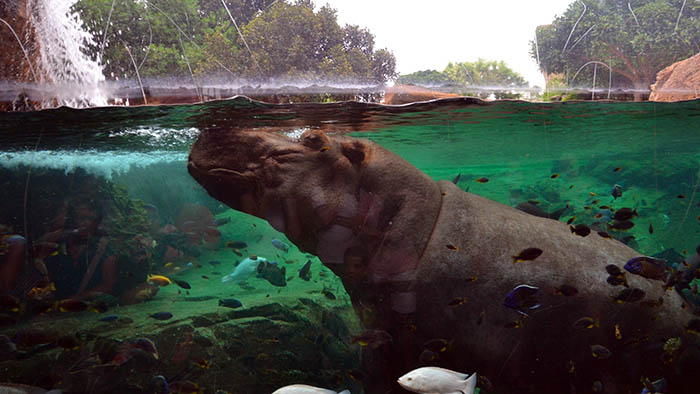 Le tarif est un peu élevé –24€ par adulte- mais vaut le coup 8 hectares, plus de 800 animaux, 116 espèces … Les paysages sont sublimes avec ses forêts, cascades, aquariums, etc. … et les animaux sont vraiment à portée de main : les lémuriens de Madagascar gambadant quasiment entre nos jambes, l’éléphant nous éclaboussant au bord de son lac, les suricates prenant la pause devant nos objectifs …