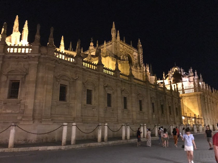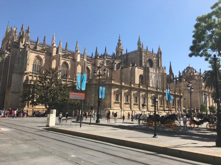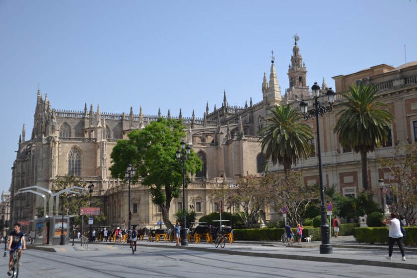 Impressionnante ! Elevée en lieu et place de la Grande Mosquée entre 1402 et 1509 cette cathédrale est l’un d’un plus grand lieu de culte chrétien avec ses 130m de long. A ces côtés la Giralda, le clocher qui doit son nom à la girouette la surplombant était précédemment un minaret inspiré de la Koutoubia de Marrakech.